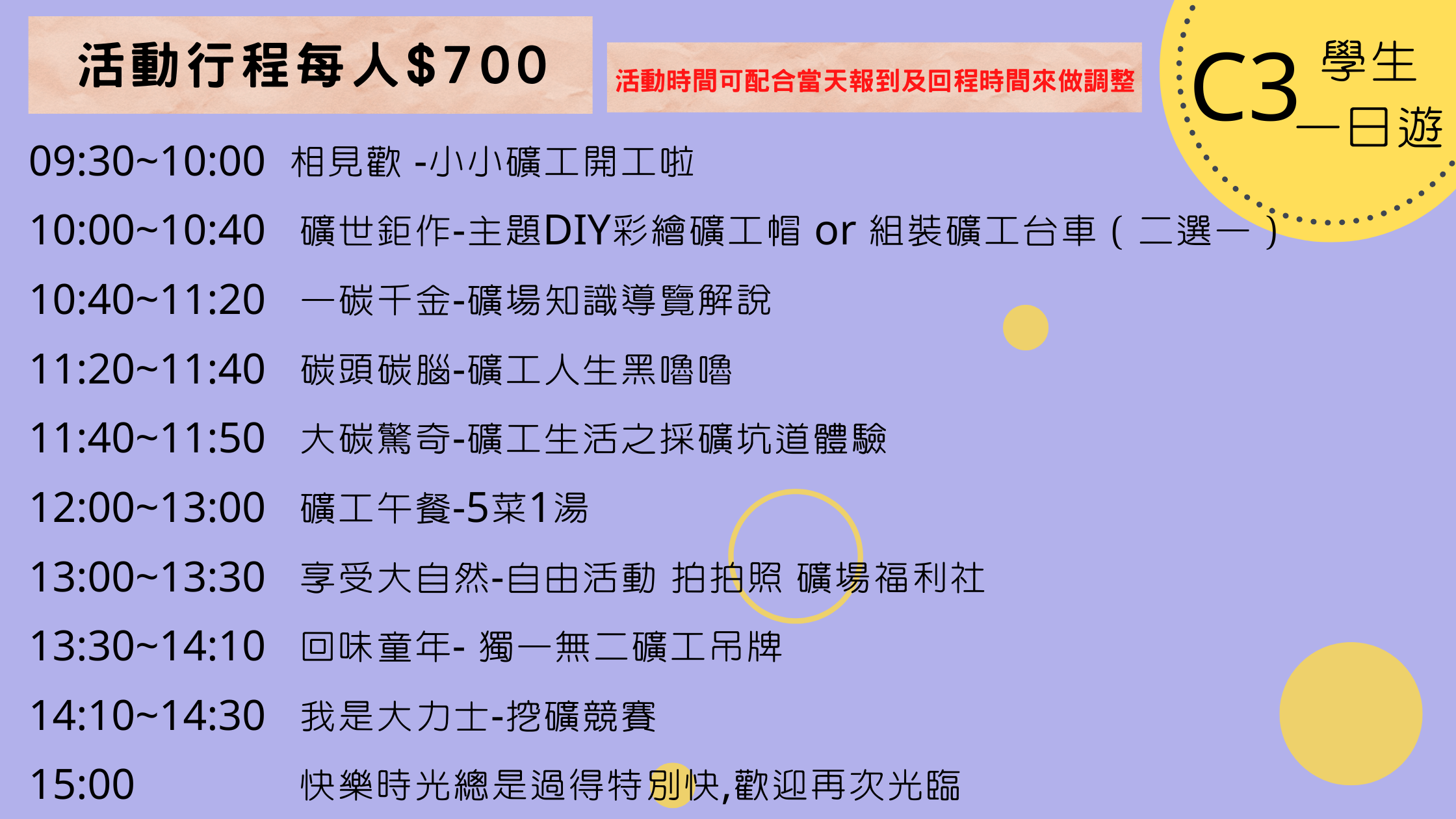 4.戶外教學行程若有更改,費用另計。